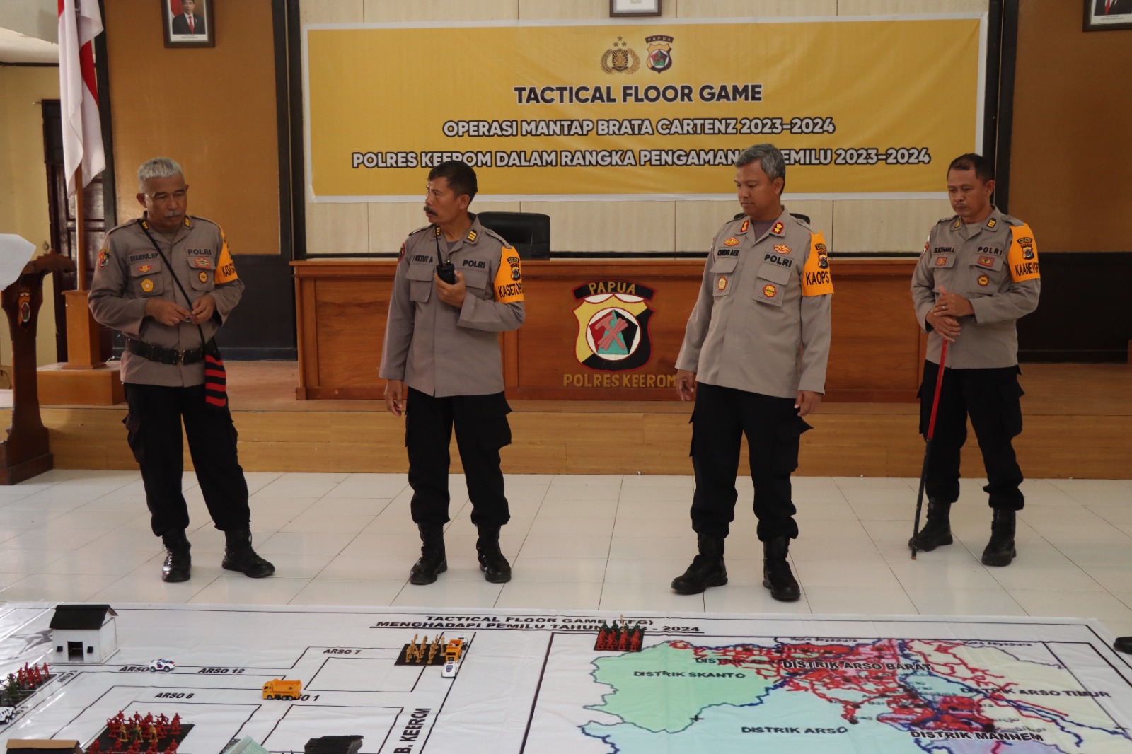 Dalam Pelaksanaan Operasi Mantap Brata Cartenz Tahun 2023-2024, Polres Keerom laksanakan TFG dalam rangka untuk memberikan gambaran kepada para Kasatgas dan Pejabat Operasi lainnya mengenai situasi, cara bertindak maupun strategi menghadapi permasalahan serta untuk mengantisipasi terjadinya gangguan kamtibmas.