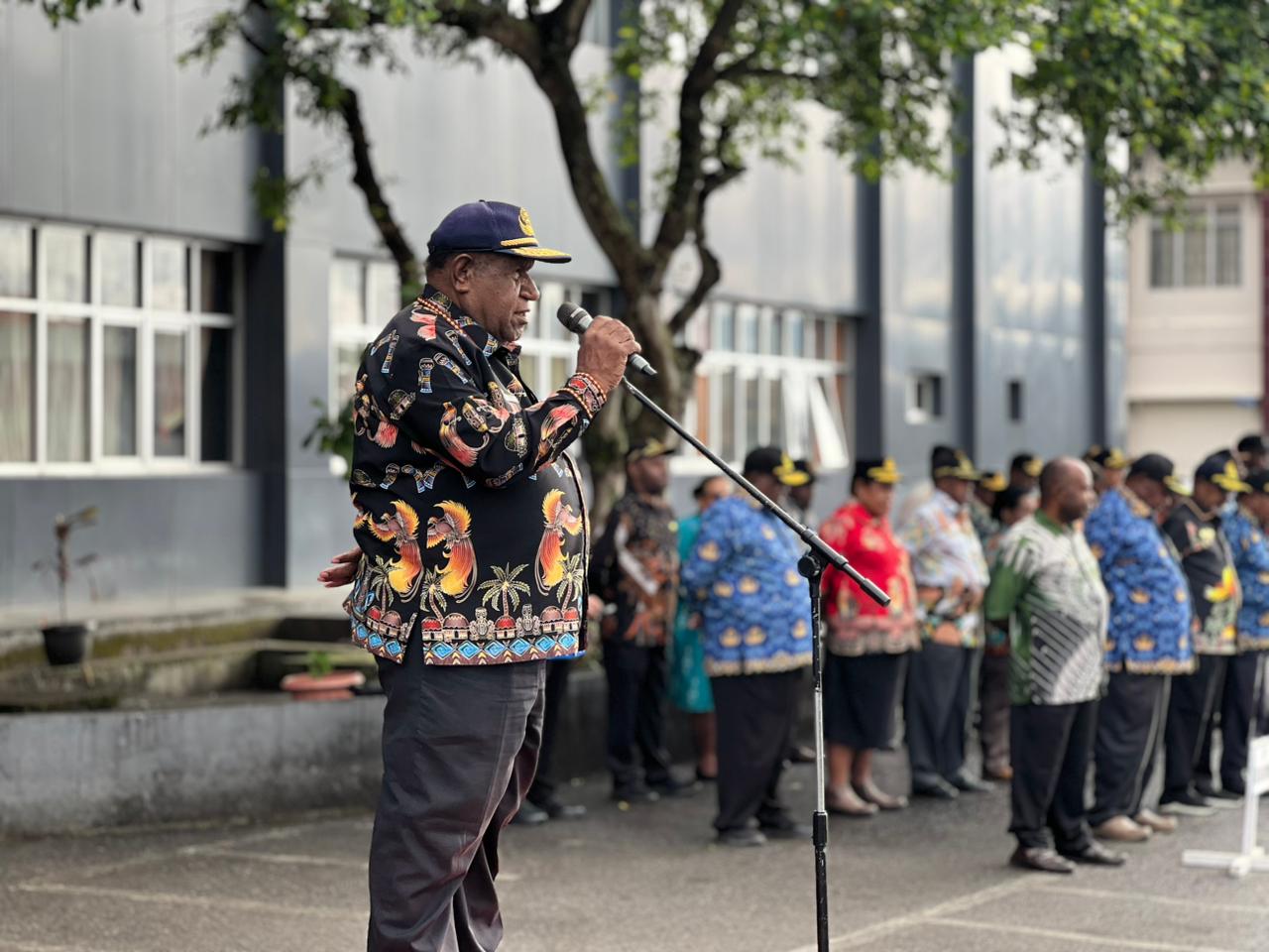 WAMENA, 23 April 2026 – Penjabat Sekretaris Daerah (Pj. Sekda) Provinsi Papua Pegunungan, Wasuok Demianus Siep, memimpin apel pagi di lingkungan Pemerintah Provinsi Papua Pegunungan, Kamis (23/4). Apel yang diikuti ratusan Aparatur Sipil Negara (ASN) tersebut menjadi momentum penegasan kembali disiplin kehadiran serta penyesuaian penggunaan pakaian dinas di lingkup pemerintahan daerah.