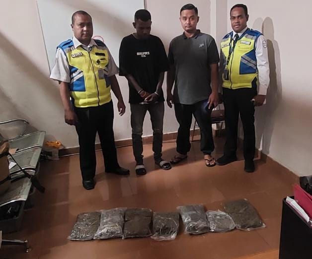 JAYAPURA Seorang penumpang pesawat di Bandara Sentani berinisial YMW (28) ditangkap tim keamanan Bandara Sentani, lantaran membawa 2,7 Kilogram ganja kering, Minggu (16/6/2024) siang.