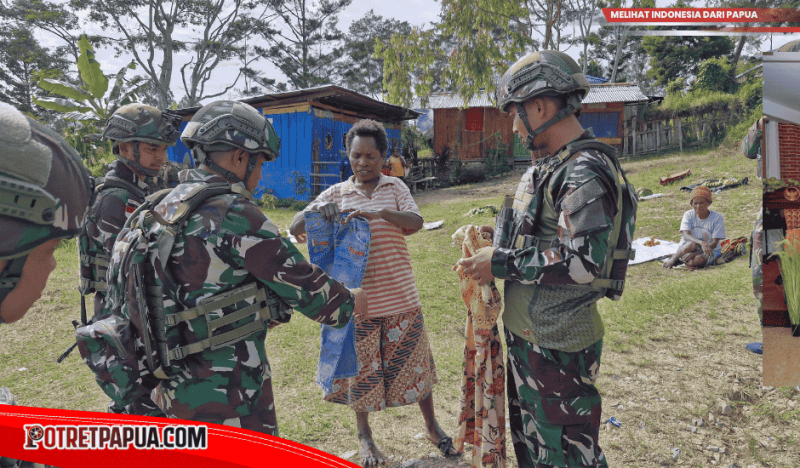 Di Samping melaksanakan kegiatan patroli keamanan dan menjaga stabilitas wilayah serta memberikan rasa aman dan nyaman untuk penduduk setempat, Anggota Pos Bolakme Satgas Yonif 521/DY berupaya Berbagi Kasih untuk membagikan pakaian layak pakai kepada anak – anak dan warga masyarakat di Pos Bolakme , Distrik Bolakme, Kabupaten Jayawijaya, Senin (10/6/2025).