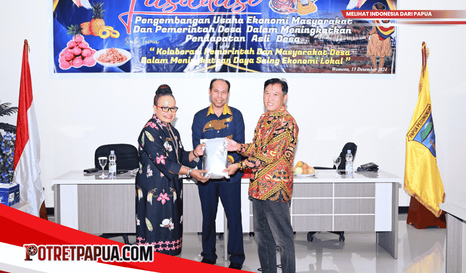 WAMENA – Pemerintah Provinsi Papua Pegunungan melalui Dinas Kependudukan dan Pencatatan Sipil serta Pemberdayaan Masyarakat dan Kampung melaksanakan kegiatan Fasilitasi Pengembangan Usaha Ekonomi Masyarakat dan Pemerintah Desa dalam Meningkatkan Pendapatan Asli Desa pada Jumat, 13 Desember 2024, di Gedung Aithousa GKI Betlehem Wamena. Kegiatan ini dibuka langsung oleh Asisten III Sekda Provinsi Papua Pegunungan, Petrus Mahuze, dan diikuti oleh kurang lebih 200 masyarakat dan perwakilan pemerintah desa.