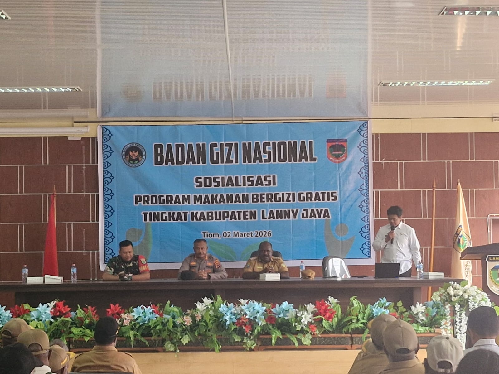 TIOM – Bupati Lanny Jaya, Aletinus Yigibalom, S.Pd, secara resmi membuka kegiatan Sosialisasi Program Makan Bergizi Gratis (MBG) tingkat Kabupaten Lanny Jaya yang diselenggarakan oleh Badan Gizi Nasional (BGN) di Aula Kantor Bupati, Senin (2/3/2026).