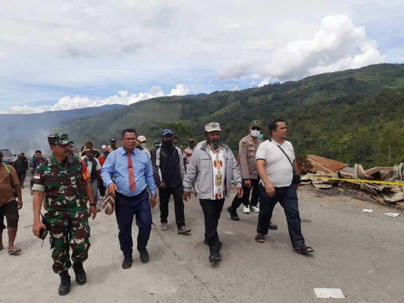 Bupati Willem Wandik Tinjau Langsung Lokasi Kebakaran Giling Batu, Serahkan Bantuan untuk Korban