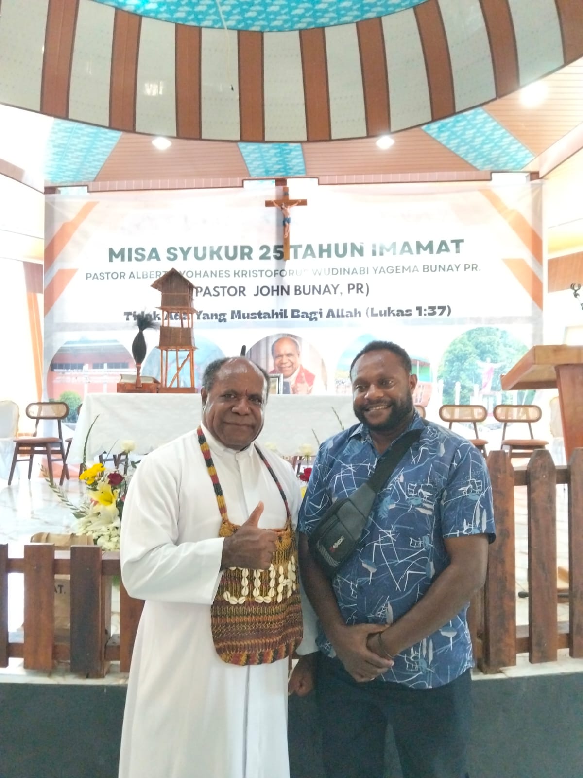 Misa Perayaan Syukur Yubileum Pesta Perak 25 Tahun Imamat Pastor John Bunay, Pr., berlangsung khidmat di Bahtera Kristoforus, Kampung Dosai, Distrik Sentani Barat, Kabupaten Jayapura. Bangunan doa itu berdiri tenang di bawah kaki Gunung Cycloop (Sicklop), gunung yang bagi orang Papua bukan sekadar bentang alam, tetapi simbol penjaga kehidupan, keheningan, dan kesetiaan.