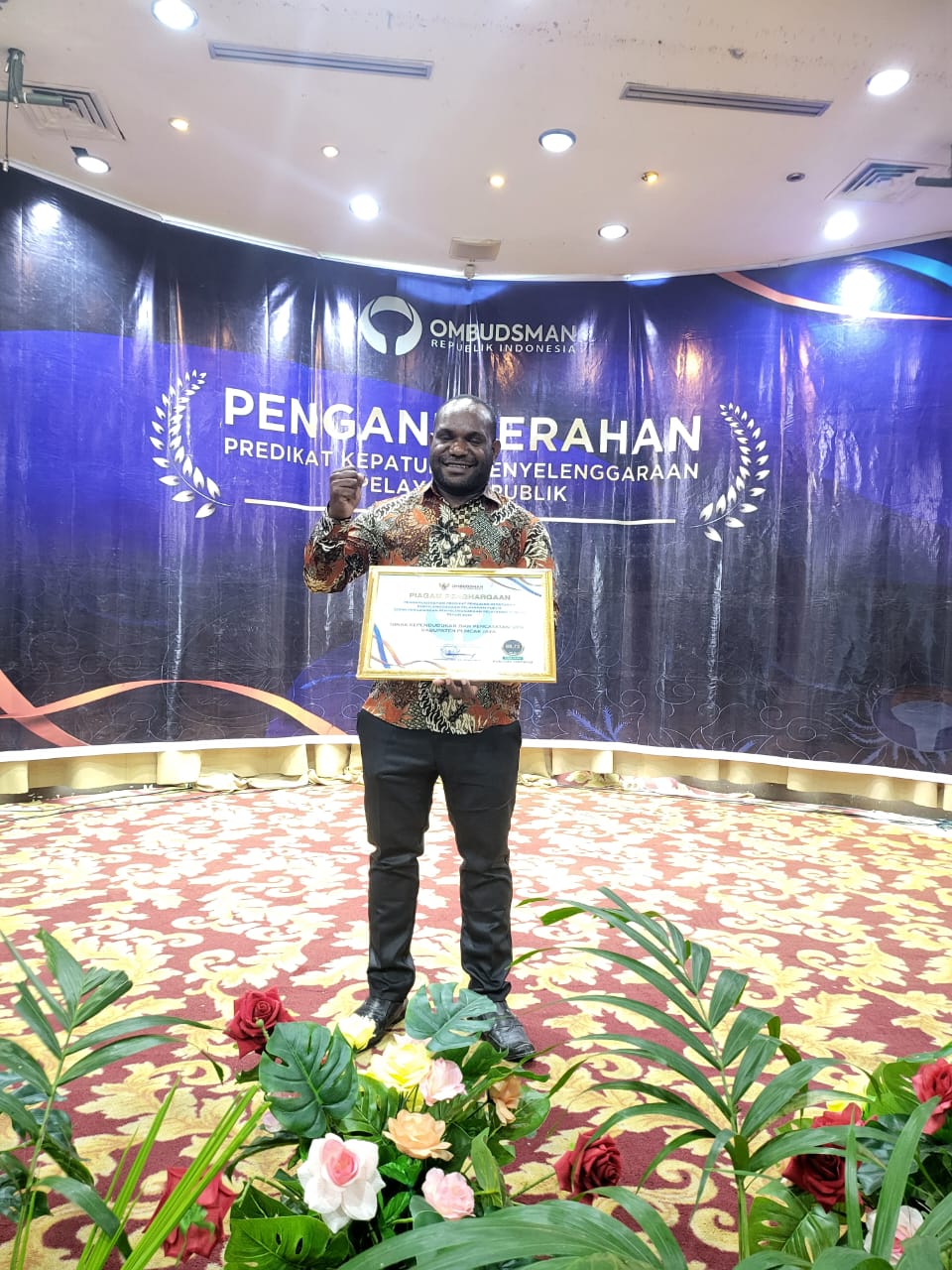 JAYAPURA-Ombudsman Republik Indonesia Perwakilan Papua memberikan pengharagaan Prediakt Zoan Hijau Dalam Kepatuhan Pelayanan Publik Tahun 2024 Kepada Puskesmas Mulia dan Dispendukcapil Kabupaten Puncak Jaya. Penghargaan ini diberikan pada Kamis 12 Desember 2024 di Salah satu hotel di Kota Jayapura.