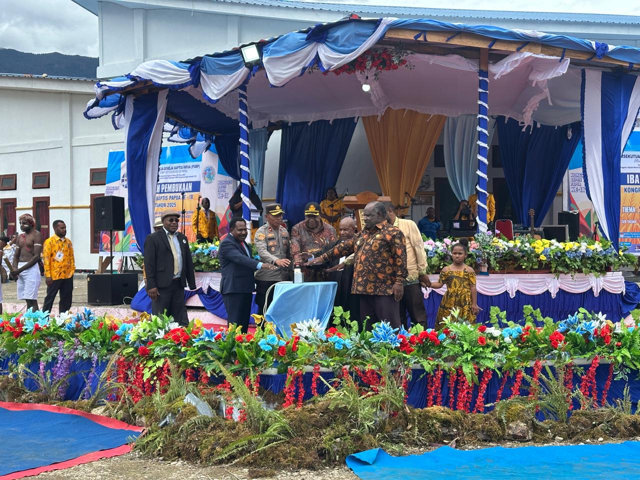 Gubernur John Tabo mengakui atas nama Pemerintah Provinsi Papua Pegunungan menyampaikan apresiasi setinggi-tingginya kepada pimpinan Gereja Baptis yang telah menginisiasi dan menyelenggarakan kongres sebagai tanda komitmen gereja untuk terus hadir ditengah-tengah umat Tuhan.
