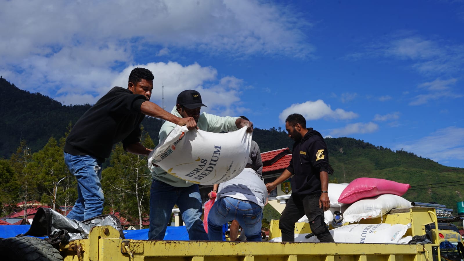 Mulia, Sabtu (26/07) – Jatah beras yang diperuntukkan bagi Aparatur Sipil Negara (ASN) di lingkungan Pemerintah Daerah (Pemda) Kabupaten Puncak Jaya, Provinsi Papua Tengah, saat ini baru tersalurkan untuk bulan Januari, Februari, dan Maret 2025. Penyaluran tersebut dilakukan di Halaman Kantor Bupati Puncak Jaya.