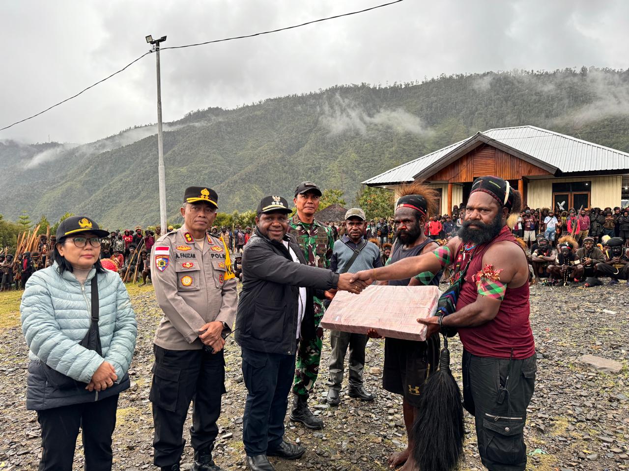 Bantuan dana untuk pelaksanaan ritual adat patah panah dan lepas tali busur untuk perdamaian itu, diserahkan lansung Pj Bupati Puncak Jaya, Yopi Murib SE, MM didampingi Kapolres Puncak Jaya, AKBP Achmad Fauzan, Dandim 1714 Puncak Jaya, Letkol Inf Irawan Setya Kusuma dan Komandan Satuan Tugas serta pejabat Pemkab Puncak Jaya ini, dilakukan secara terpisah, Jumat 6 Juni 2025.