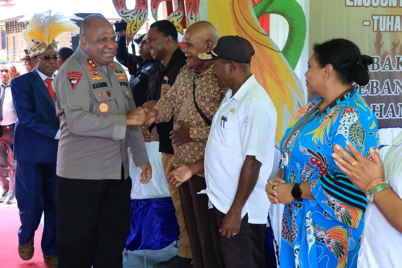 JAYAPURA– Kapolda Papua Irjen Pol. Mathius D. Fakhiri, S.I.K., menghadiri kegiatan Kebaktian Kebangunan Rohani (KKR) yang bertempat di Lapangan Budi Utomo Waren, Waren Satu, Kec. Waropen Bawah, Kabupaten Waropen, Provinsi Papua, Rabu (12/06).