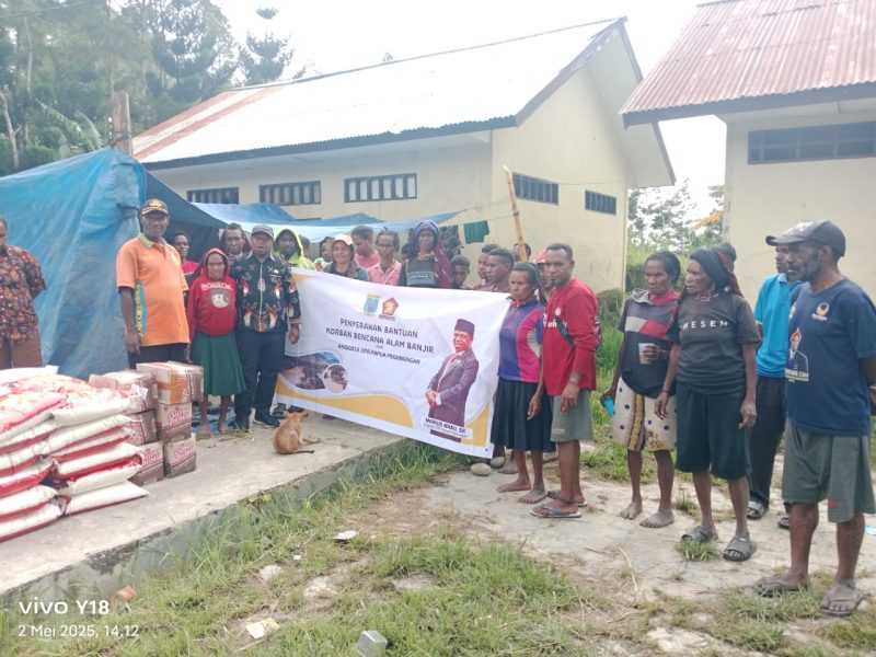 Wamena, 2 Mei 2025 – Anggota DPR Papua Pegunungan, Marius Wamu, S.E., menunjukkan kepeduliannya terhadap masyarakat terdampak banjir di Kabupaten Jayawijaya dengan menyalurkan tiga ton beras dan 90 karton mie bagi warga di distrik yang mengalami dampak serius.
