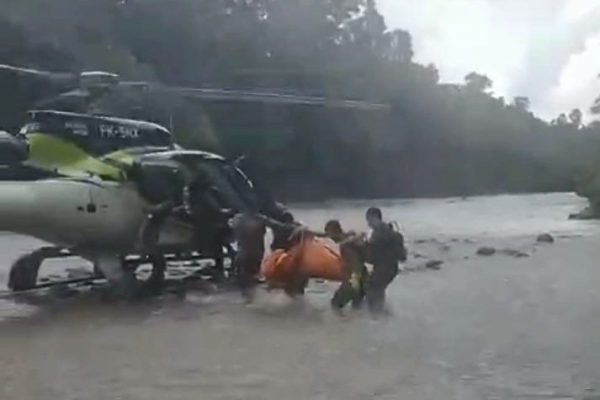Ketegangan ini menyusul medan berat yang dihadapi aparat gabungan di lokasi kejadian. Tim evakuasi terpaksa mendaratkan helikopter di tengah sungai.