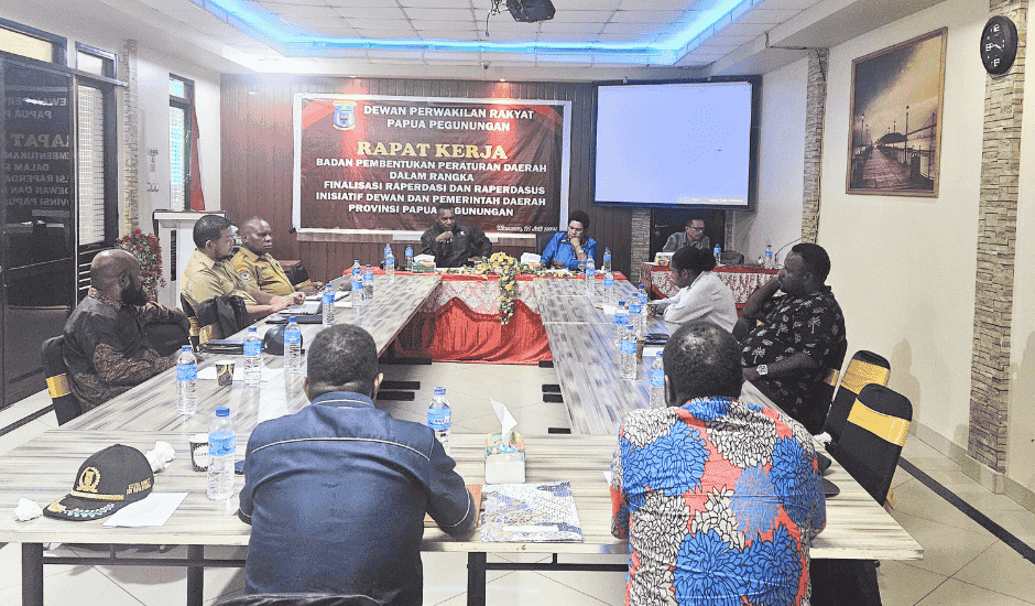 Wamena, 22 Juli 2025 — Badan Pembentukan Peraturan Daerah (Bapemperda) DPR Papua Pegunungan bersama Pemerintah Daerah Provinsi Papua Pegunungan melalui Biro Hukum Sekretariat Daerah (Setda) menggelar rapat kerja penting dalam rangka finalisasi Rancangan Peraturan Daerah Provinsi (Ranperdasi) dan Rancangan Peraturan Daerah Khusus (Ranperdasus) untuk tahun 2025.