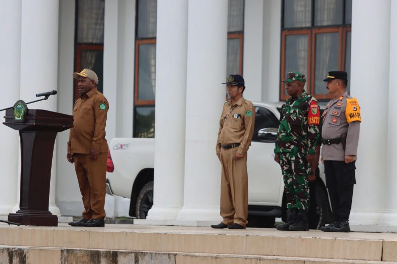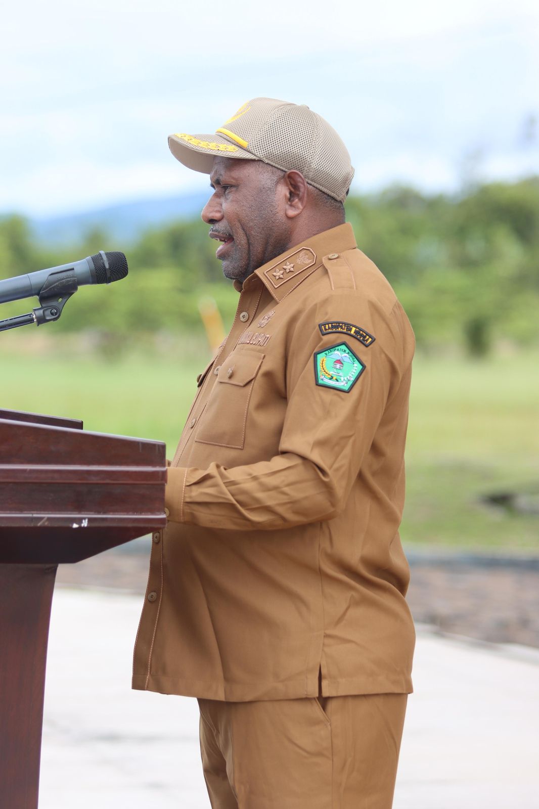 Keneyam, 14 April 2025 – Pemerintah Kabupaten Nduga menggelar apel gabungan yang berlangsung di halaman Kantor Bupati Nduga, di mana dalam sambutannya Bupati Nduga Dinar Kelnea , S.SOS yang dibacakan Wakil Bupati Yoas Beon, S.IP., memberikan arahan strategis kepada jajaran Organisasi Perangkat Daerah (OPD), Aparatur Sipil Negara (ASN), TNI-Polri, dan Forkopimda. Apel ini menjadi langkah awal untuk mengevaluasi kondisi internal pemerintahan sekaligus menyampaikan agenda pembangunan daerah ke depan.