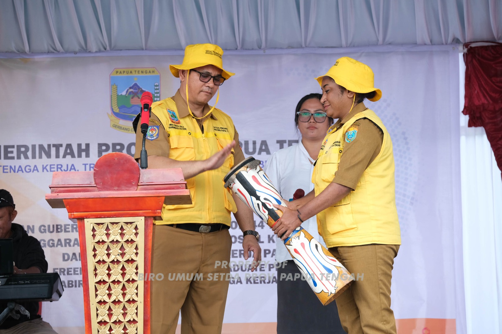 “Sebagai upaya pemerintah pusat dalam menanggulangi pengangguran, maka telah diterbitkan UU Nomor 6 tahun 2023 tentang Cipta Kerja yang beberapa tujuannya adalah untuk menciptakan dan meningkatkan lapangan kerja dengan memberikan kemudahan, pelindungan, dan pemberdayaan,” ungkap Ribka Haluk dalam sambutannya yang dibacakan Penjabat Sekda Provinsi Papua Tengah, Anwar Harun Damanik, S.STP., MM.