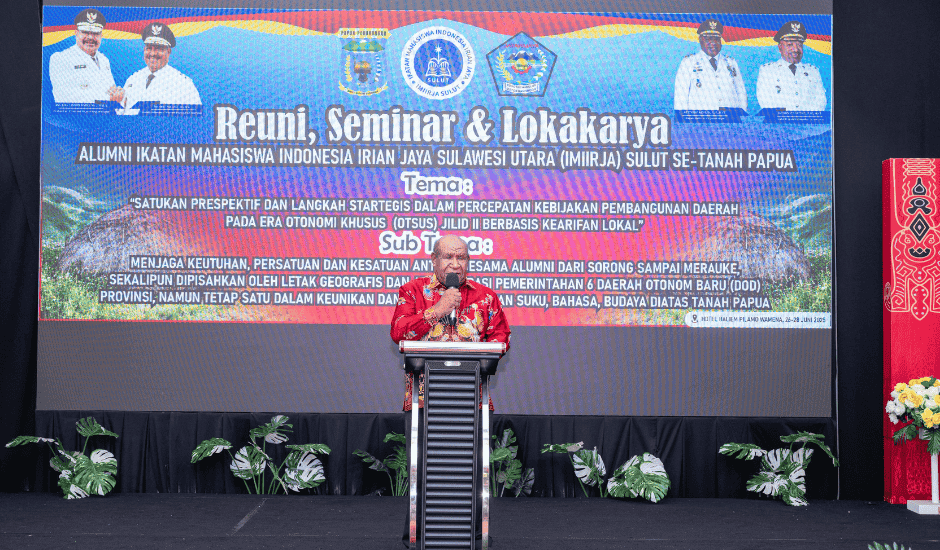Wamena — 26 Juni 2025, Penjabat Sekretaris Daerah Papua Pegunungan, Dr. Wasuok Demianus Siep, secara resmi membuka kegiatan Reuni Akbar dan Lokakarya Alumni Ikatan Mahasiswa Indonesia Irian Jaya (IMIIRJA) Sulawesi Utara se-Tanah Papua yang berlangsung di Hotel Baliem Pilamo, Wamena.
