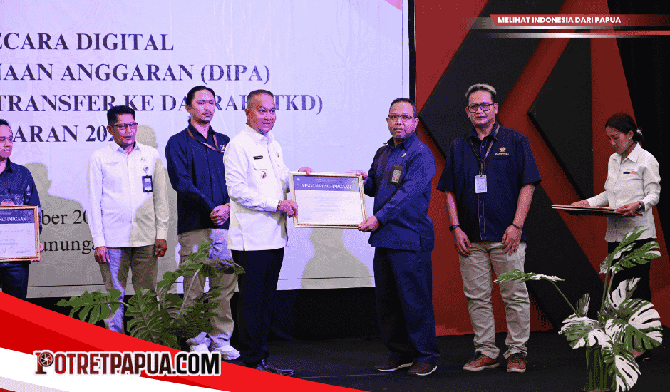 WAMENA – Penjabat Gubernur Provinsi Papua Pegunungan, Dr. Velix Vernando Wanggai, S.IP., M.PA, didampingi oleh Penjabat Sekda Provinsi Papua, Drs. Wasuok Demianus Siep, menghadiri acara Penyerahan Daftar Isian Pelaksanaan Anggaran (DIPA) dan Buku Alokasi Transfer ke Daerah (TKD) tahun Anggaran 2025 di Hotel Baliem Pilamo Wamena pada Rabu, 18 Desember 2024. Penyerahan DIPA dan Buku Alokasi TKD ini dilakukan secara digital dan menjadi simbol dimulainya pelaksanaan APBN tahun anggaran 2025 di Provinsi Papua Pegunungan. Kegiatan ini juga dihadiri oleh pimpinan daerah 8 kabupaten yang ada di Provinsi Papua Pegunungan beserta Forkompinda.