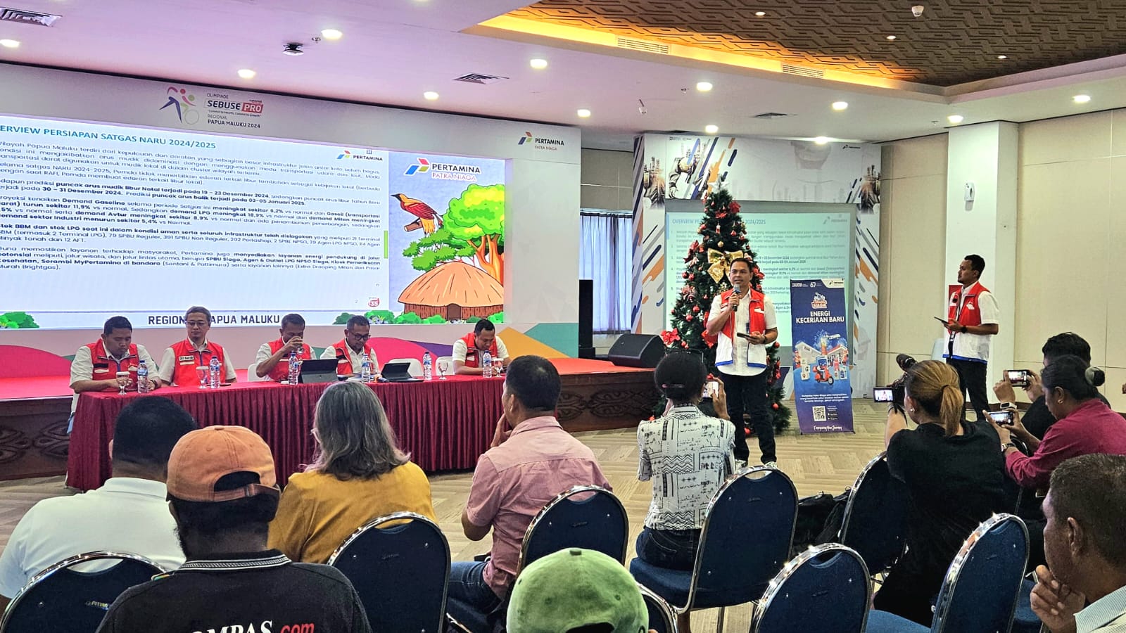 JAYAPURA – Pertamina Patra Niaga Regional Papua Maluku menggelar konferensi pers pada Senin, 23 Desember 2024, di Kota Jayapura, guna mengumumkan persiapan Satgas Natal 2024 dan Tahun Baru 2025. Wilayah Papua Maluku, yang terdiri dari kepulauan dan daratan dengan infrastruktur jalan antar kota yang sebagian besar belum memadai, membuat arus mudik didominasi oleh moda transportasi udara dan laut. Moda transportasi darat digunakan untuk mudik lokal di dalam cluster wilayah tertentu.