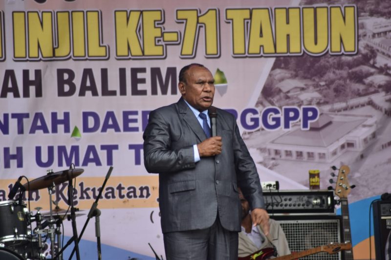 Bupati Jayawijaya, Atenus Murib, S.H., M.H., turut hadir dan memberikan sambutan yang penuh rasa syukur kepada para misionaris yang pertama kali memperkenalkan Injil di Lembah Baliem pada tahun 1954. Ia mengajak seluruh gereja untuk bersatu menjalankan misi pelayanan, termasuk menjaga wilayah dari ancaman seperti penyebaran minuman keras dan ganja. “Setiap gereja harus aktif menasihati jemaatnya dan bersama-sama menjaga daerah agar tetap aman dan sejahtera,” tegasnya.