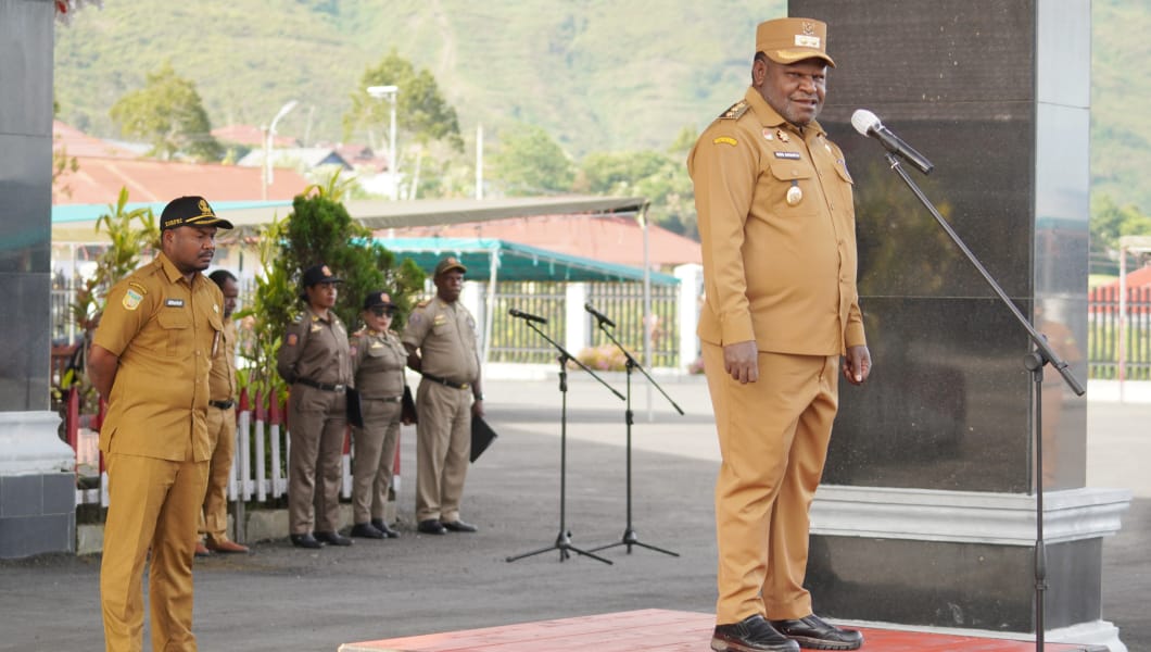 Mulia, Senin (15/12/2025) — Wakil Bupati Kabupaten Puncak Jaya, Mus Kogoya, SE, MM, memimpin apel gabungan akhir tahun yang diikuti oleh Aparatur Sipil Negara (ASN), tenaga honorer, instansi vertikal, serta organisasi kemasyarakatan di lingkungan Pemerintah Kabupaten Puncak Jaya. Apel tersebut dilaksanakan di Halaman Kantor Bupati Puncak Jaya.