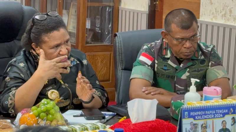NABIRE – Penjabat Gubernur Papua Tengah, Dr. Ribka Haluk, S.Sos., MM menggelar rapat terbatas bersama Forum Komunikasi Pimpindan Daerah (Forkopimda) dan Anggota Majelis Rakyat Papua (MRP) untuk menyikapi permasalahan yang terjadi di Kabupaten Puncak Jaya, Kamis (18/7/2024) sore.