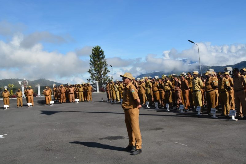 ‎Kegiatan tersebut menjadi momentum penting untuk memperkuat komitmen ASN dan seluruh elemen masyarakat dalam mendukung jalannya pemerintahan serta pembangunan daerah. Dalam amanatnya, Pj. Sekda menegaskan bahwa pemerintah daerah telah melaksanakan pengecekan terhadap ASN di wilayah Puncak Jaya. Ia mengingatkan agar ASN benar-benar melaksanakan tugas di tempat kerja masing-masing.