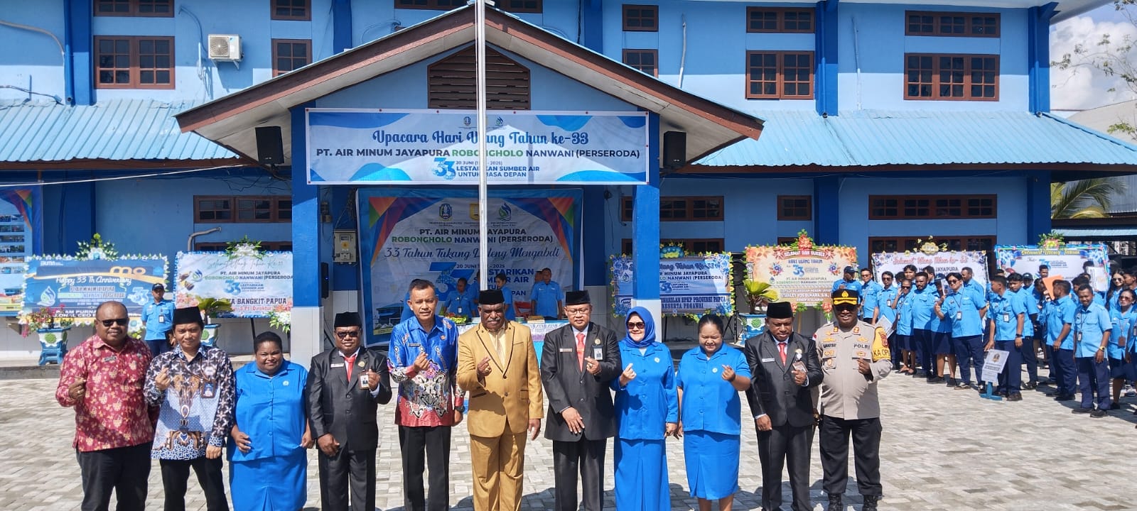 JAYAPURA – PT Air Minum Jayapura Robongholo Nanwani (Perseroda) genap menginjak usia 33 tahun. Usia dewasa ini bukti sukses perjuangan keras memberikan pelayanan air bersih bagi masyarakat Jayapura.
