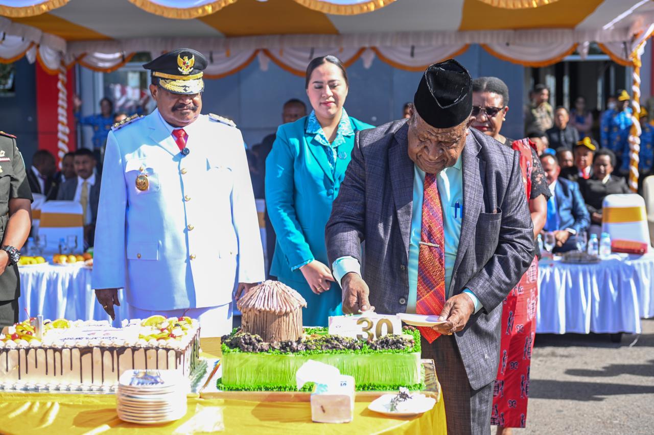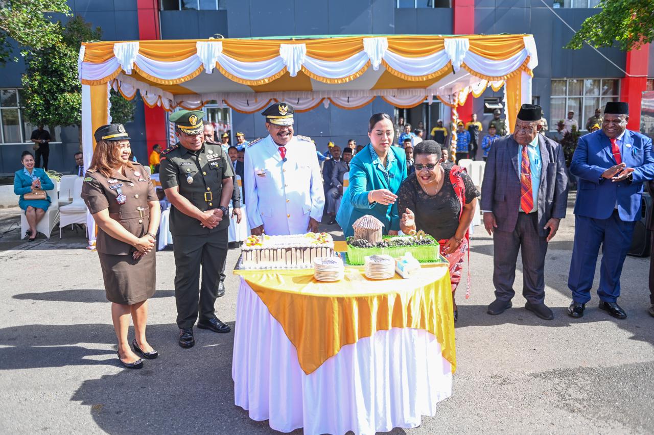 Perayaan tersebut ditandai dengan pemotongan kue sebagai simbol rasa syukur atas perjalanan satu tahun pemerintahan yang telah berjalan. Momentum ini sekaligus menjadi refleksi atas berbagai capaian, tantangan, dan harapan ke depan dalam membangun Papua Pegunungan.