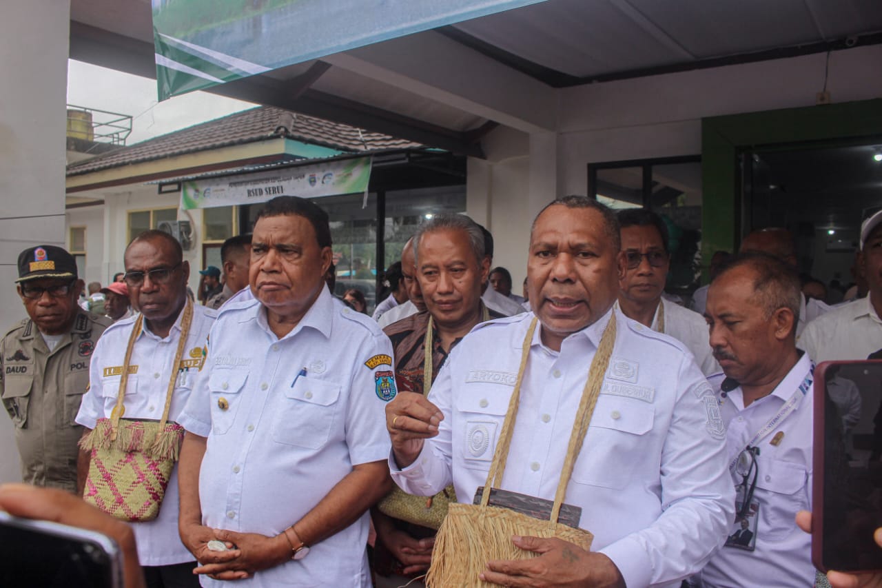 Serui, Papua – Wakil Gubernur Papua, Aryoko Alberto Ferdinand Rumaropen, S.P., M.Eng, menegaskan komitmen Pemerintah Provinsi (Pemprov) dalam transformasi layanan kesehatan di Tanah Papua. Hal ini disampaikan saat menghadiri acara Penandatanganan Perjanjian Kerjasama, Launching Sistem Informasi Manajemen Rumah Sakit (SIMRS) versi 2, dan peresmian kembali Instalasi Gawat Darurat (IGD) Terstandar di Rumah Sakit Umum Daerah (RSUD) Wainakawini Serui, Kabupaten Kepulauan Yapen, Rabu (26/11/2025).