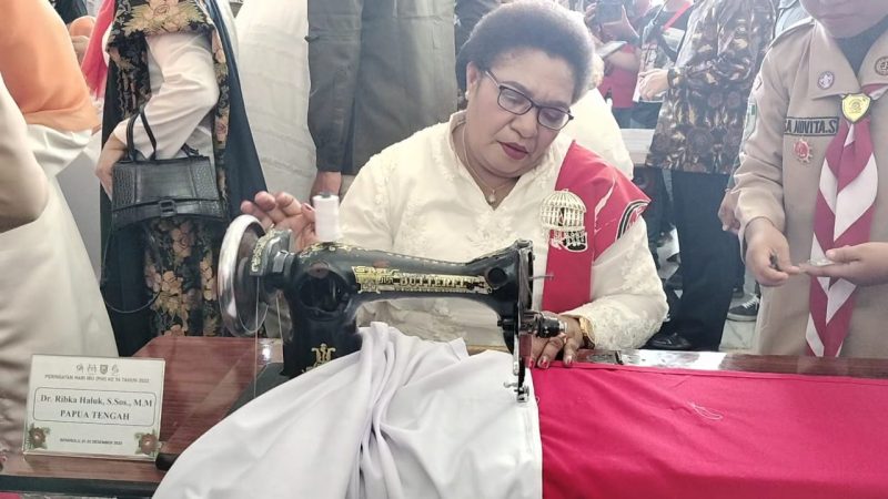 “Bendera yang nanti akan dikibarkan di upcara 17 Agustus 2023 di Papua Tengah merupakan hasil jahitan saya sendiri. Ini saya jahit di tempat ibu Fatmawati Soekarno di Bengkulu pada bulan Desember 2022 lalu. Saat itu saya kesana melihat langsung mesin jahitnya ibu Fatmawati Soekarno dan kemudian saya juga membuat bendera ini disana,” ungkap Ribka Haluk usai melaksanakan gladi bersih perayaan HUT 17 Agustus 2023 di Lapangan Kodim Nabire, Selasa (15/8/2023).