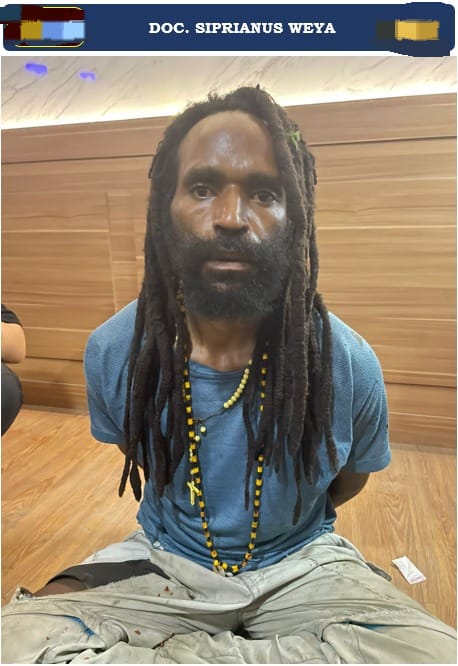 Nabire– Satgas Operasi Damai Cartenz berhasil mengamankan Siprianus Weya, salah satu anggota Kelompok Kriminal Bersenjata (KKB) pimpinan Aibon Kogoya alias Daniel Kogoya, di Polsek Topo, Kabupaten Nabire, pada Rabu (20/8) sekitar pukul 17.55 WIT.