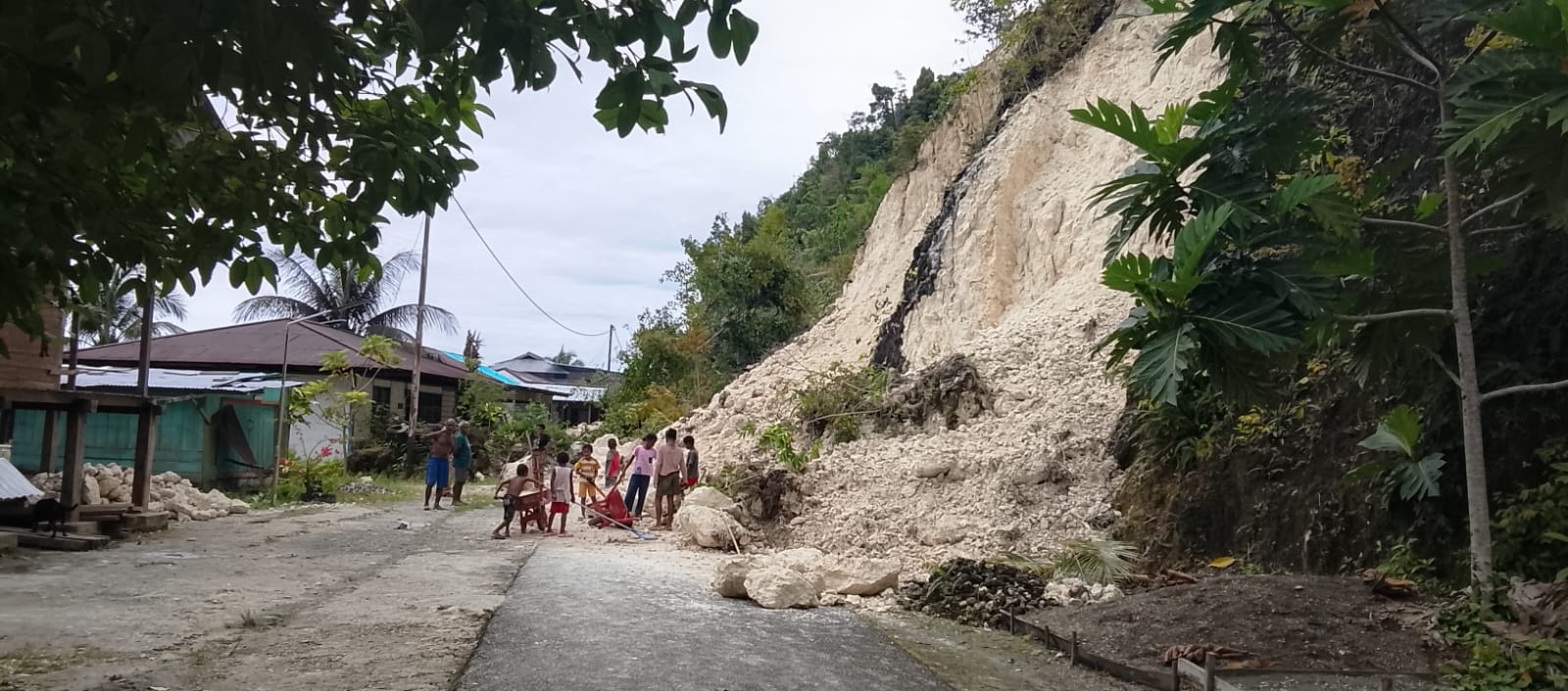 Namun, di balik rasa syukur, tersimpan harapan besar. Masyarakat meminta bantuan dari pemerintah daerah dan provinsi, terutama alat berat untuk membersihkan timbunan longsor berupa karang dan batu yang memutus jalur vital antara Kampung Sarawandori Satu dan Dua.