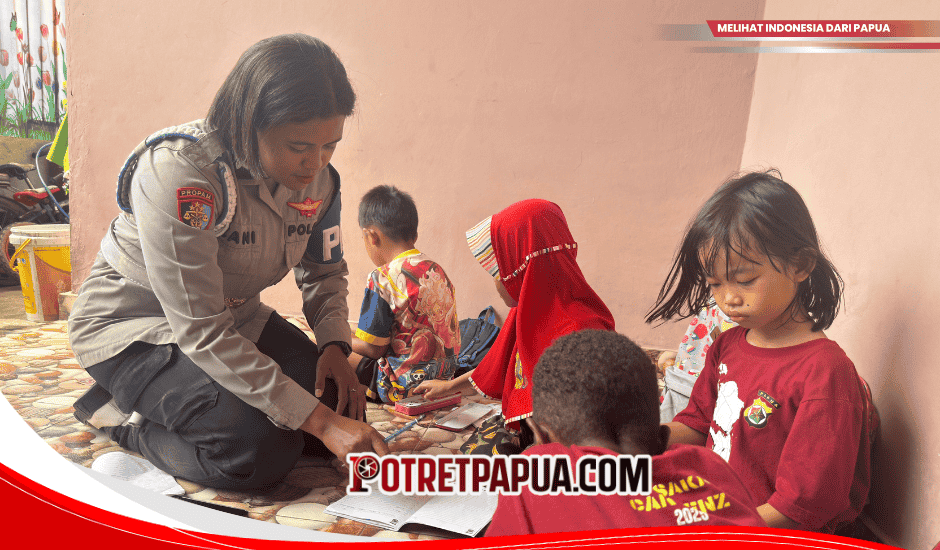 Dalam suasana penuh semangat dan kekeluargaan, anak-anak mengikuti proses belajar dengan antusias. Materi yang disampaikan mencakup kemampuan dasar seperti membaca dan menulis, yang dibimbing langsung oleh personel Polresta Jayapura Kota, Bripka Muhammad Fajar.
