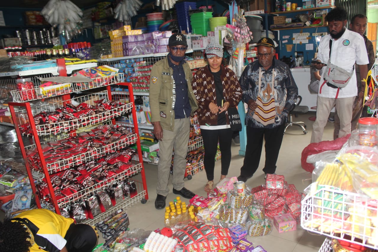 MULIA-Kepala Dinas Koperasi Perindustrian dan Perdagangan Ewonggen Kokoya, S. Pak didampingi Kepala seksi Hendrik Ibo, SE melakukan sidak barang kadaluwarsa. Hadir Bripka Rendy Taparan selaku Kanit Satuan Narkoba bersama Kasat Pol PP Frits Opur, SH, MKP, Jumat (20/10/2024).