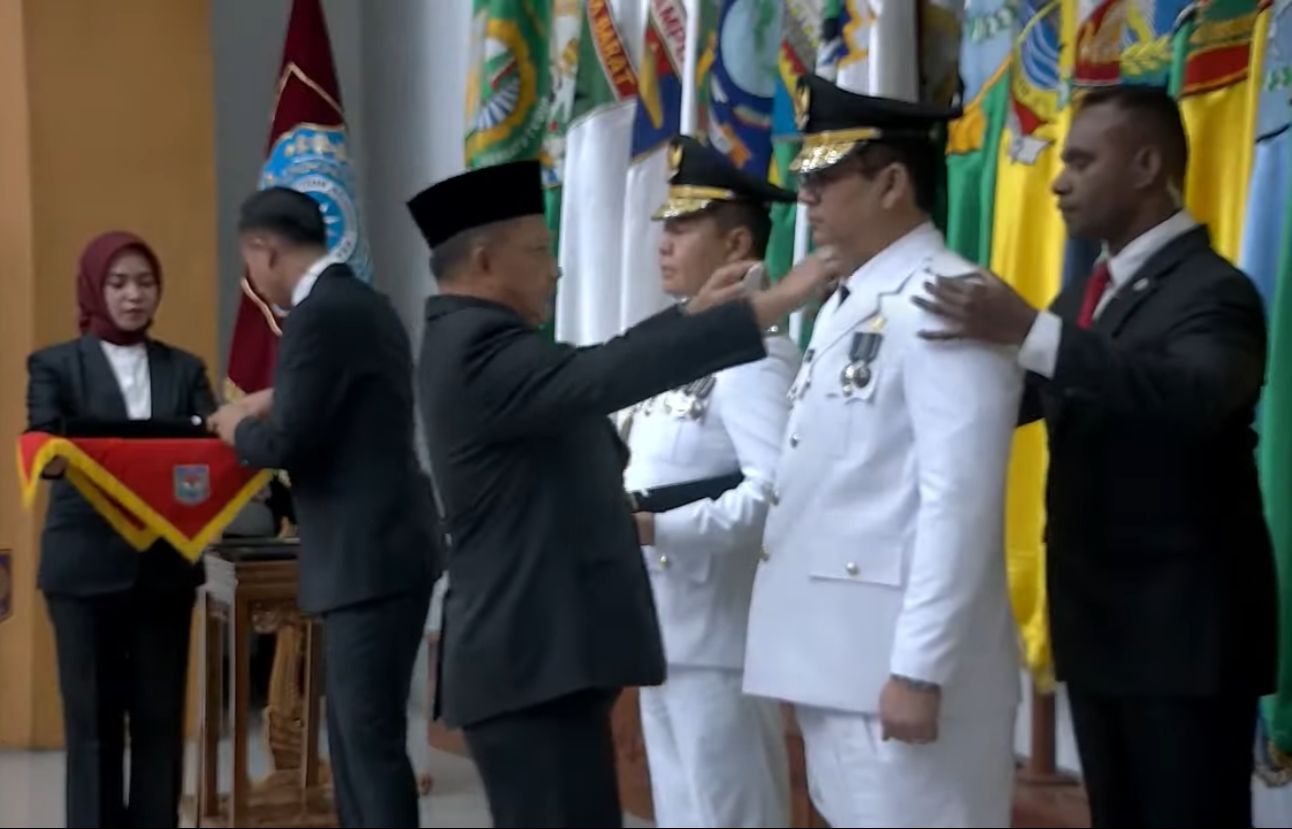 “Dengan tahmat Tuhan Yang Maha Esa, menimbang dan seterusnya, mengingat dan seterusnya, memutuskan, menetapkan Keputusan Presiden tentang pemberhentian dan pengangkatan Pejabat Gubernur Papua Tengah. Kesatu, memberhentikan dengan hormat Dr. Ribka Haluk S.Sos.,MM sebagai Penjabat Gubernur Papua Tengah terhitung sejak saat yang bersangkutan dihentikan dari jabatan tinggi madya disertai ucapan terima kasih atas pengabdian dan jasa-jasanya selama memangku jabatan tersebut. Kedua, mengangkat Anwar Harun Damanik S.STP., MM sebagai Pejabat Gubernur Papua Tengah terhitung sejak saat pelantikan dengan masa. paling lama satu tahun,” bunyi Surat Keputusan yang dibacakan pelantikan.