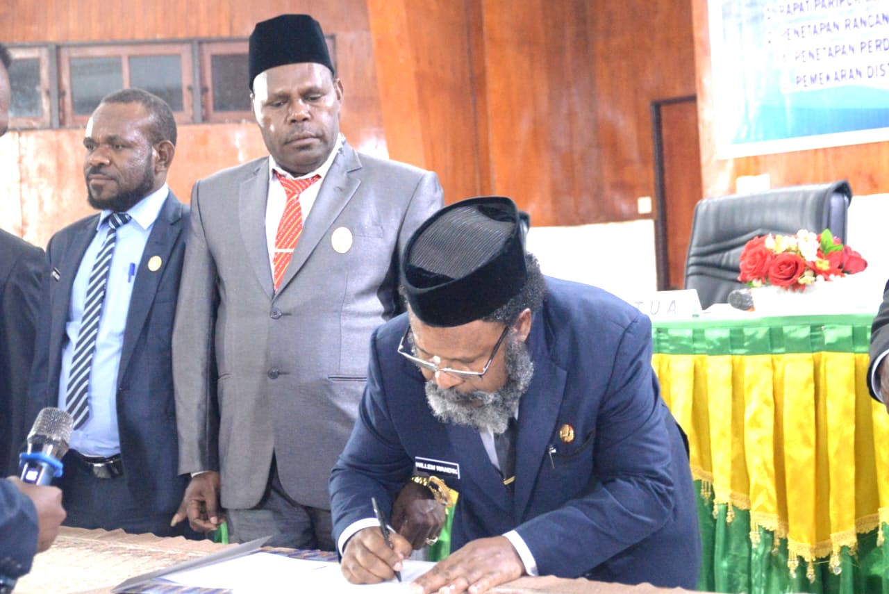 Pengesahan ini merupakan bagian dari agenda tambahan yang diajukan dalam sidang, bersamaan dengan pembahasan LKPJ Bupati Tahun Anggaran 2024, penetapan Raperda Pertanggungjawaban Pelaksanaan APBD, serta perubahan nomenklatur kelembagaan di lingkungan Pemda Tolikara.