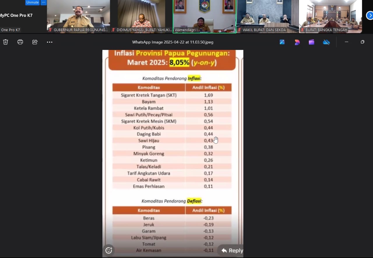 Jakarta, 22 April 2025 — Wakil Menteri Dalam Negeri (Wamendagri) Republik Indonesia, Ribka Haluk, memberikan peringatan tegas kepada Pemerintah Provinsi Papua Pegunungan untuk segera menekan angka inflasi daerah yang saat ini tercatat tinggi di angka 8,5 persen yang diketahui jauh di atas standar nasional sebesar 2,5 persen. Peringatan ini disampaikan langsung dalam rapat koordinasi bersama Gubernur Papua Pegunungan dan sejumlah kepala daerah se-Provinsi Papua Pegunungan via Zoom, di ruang rapat Pimpinan Gedung.A Kementerian Dalam Negeri, pada Selasa (22/04/2025).